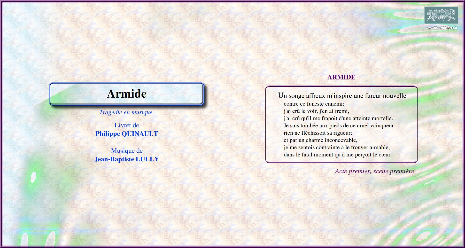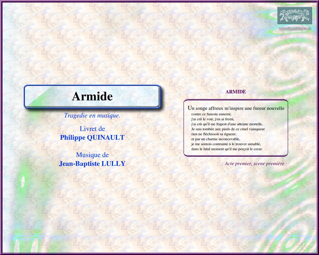Un songe affreux m'inspire une fureur nouvelle Plus j'observe ces lieux et plus je les admire Le perfide Renaud me fuit