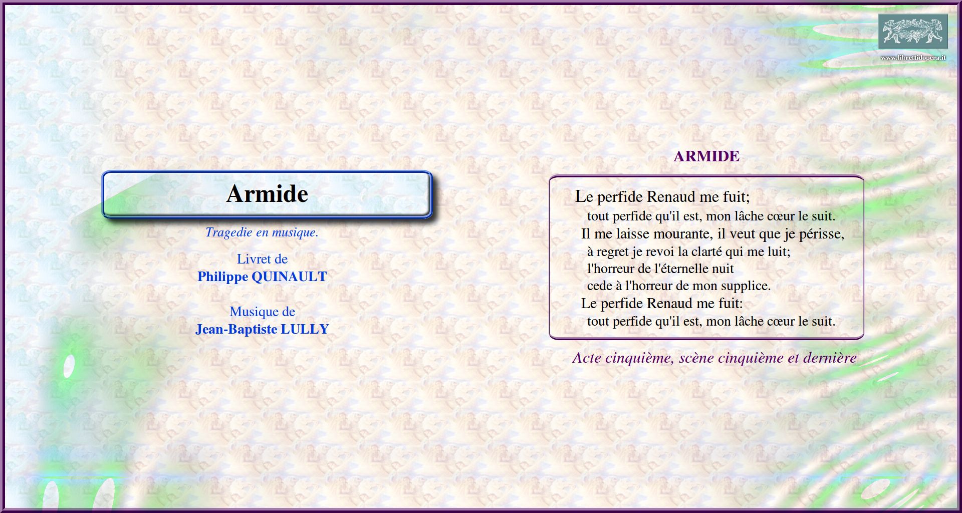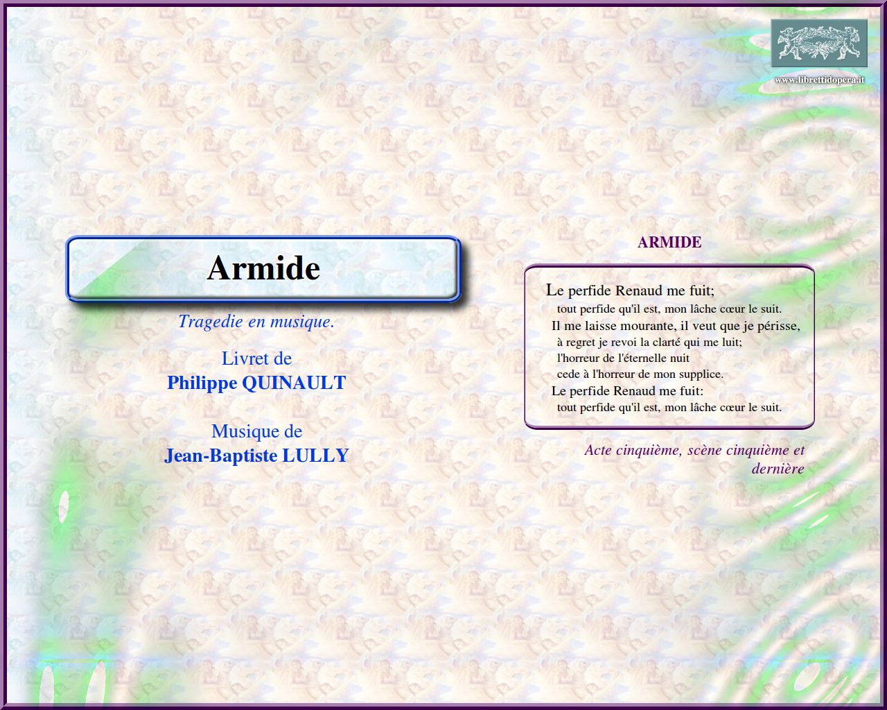 Un songe affreux m'inspire une fureur nouvelle Plus j'observe ces lieux et plus je les admire Le perfide Renaud me fuit