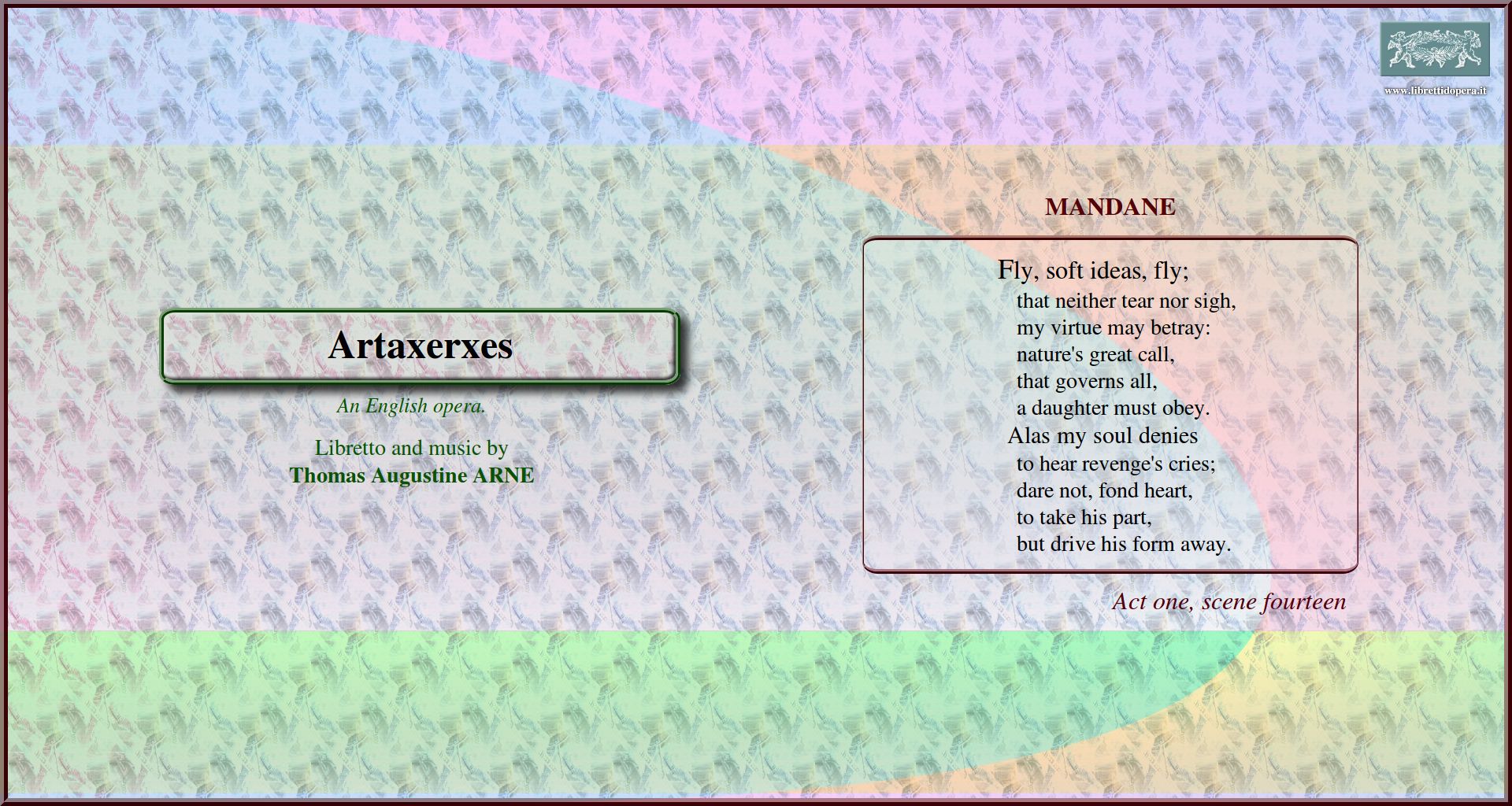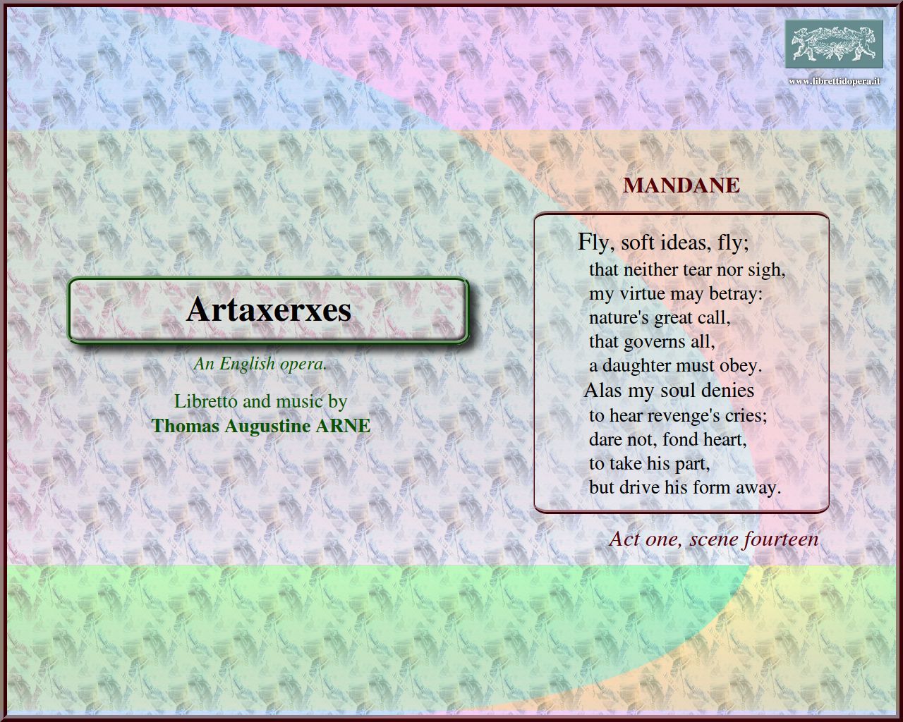 Fly, soft ideas, fly By that beloved embrace Tho' oft a cloud, with envious shade