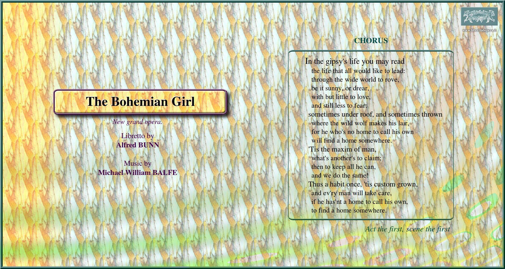 In the gipsy's life you may read I dreamt that I dwelt in marble halls When other lips and other hearts
