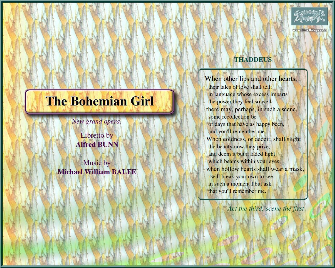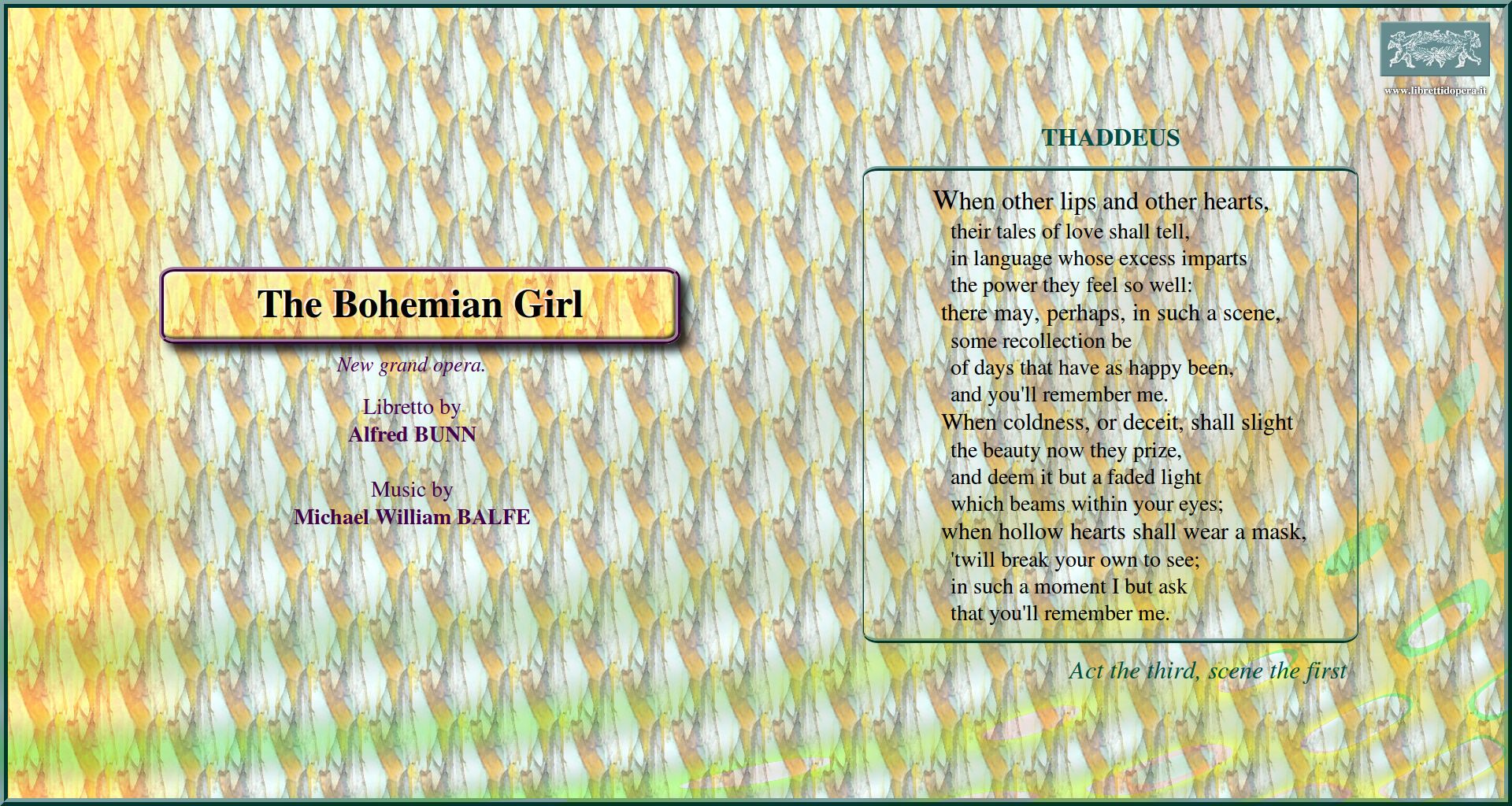 In the gipsy's life you may read I dreamt that I dwelt in marble halls When other lips and other hearts