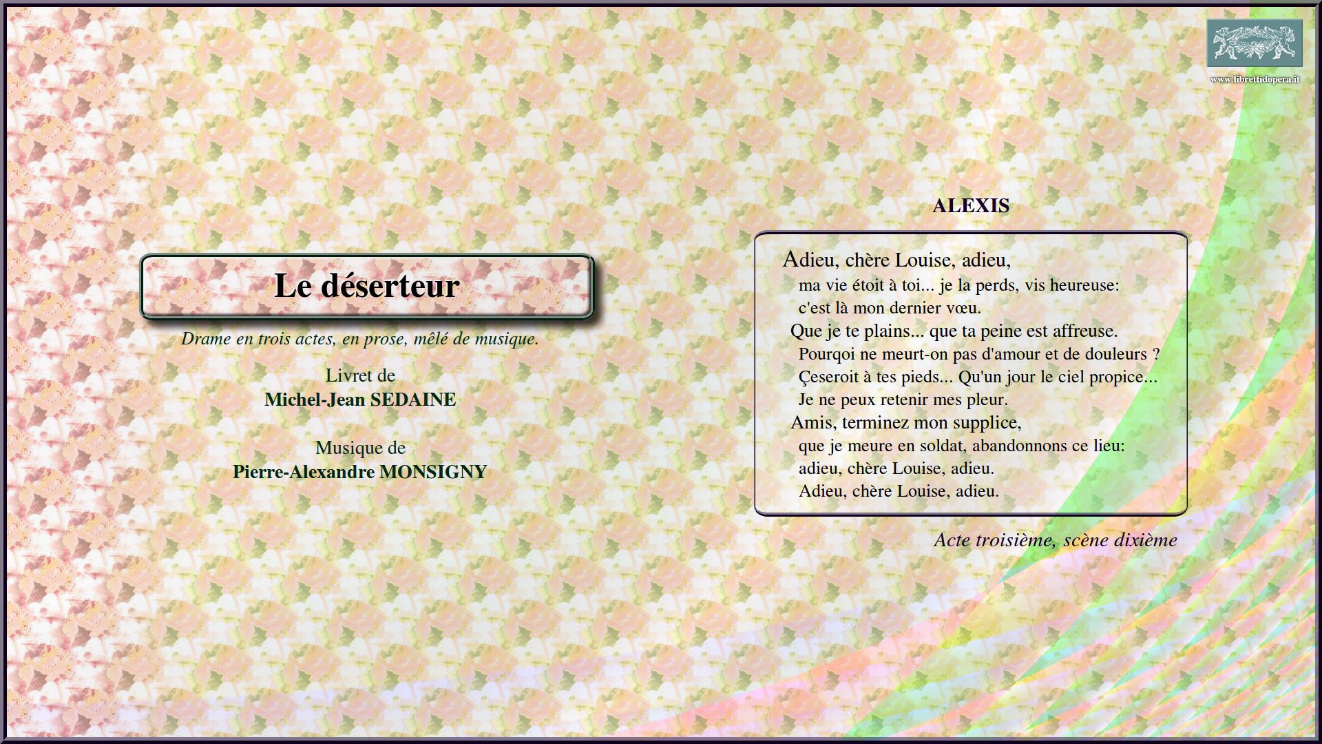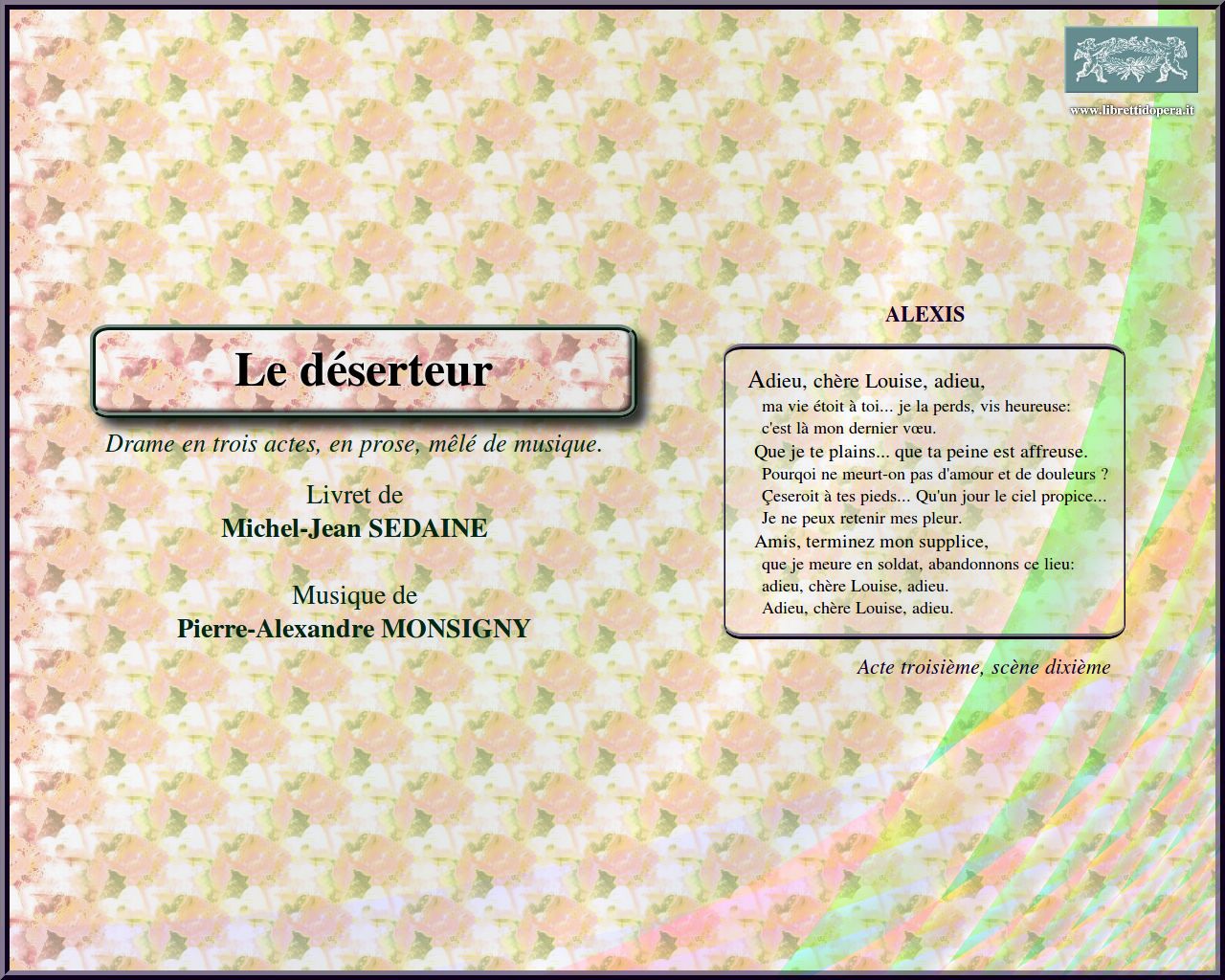 Fuyons ce lieu que je déteste Dans quel trouble te plonge Adieu, chère Louise, adieu