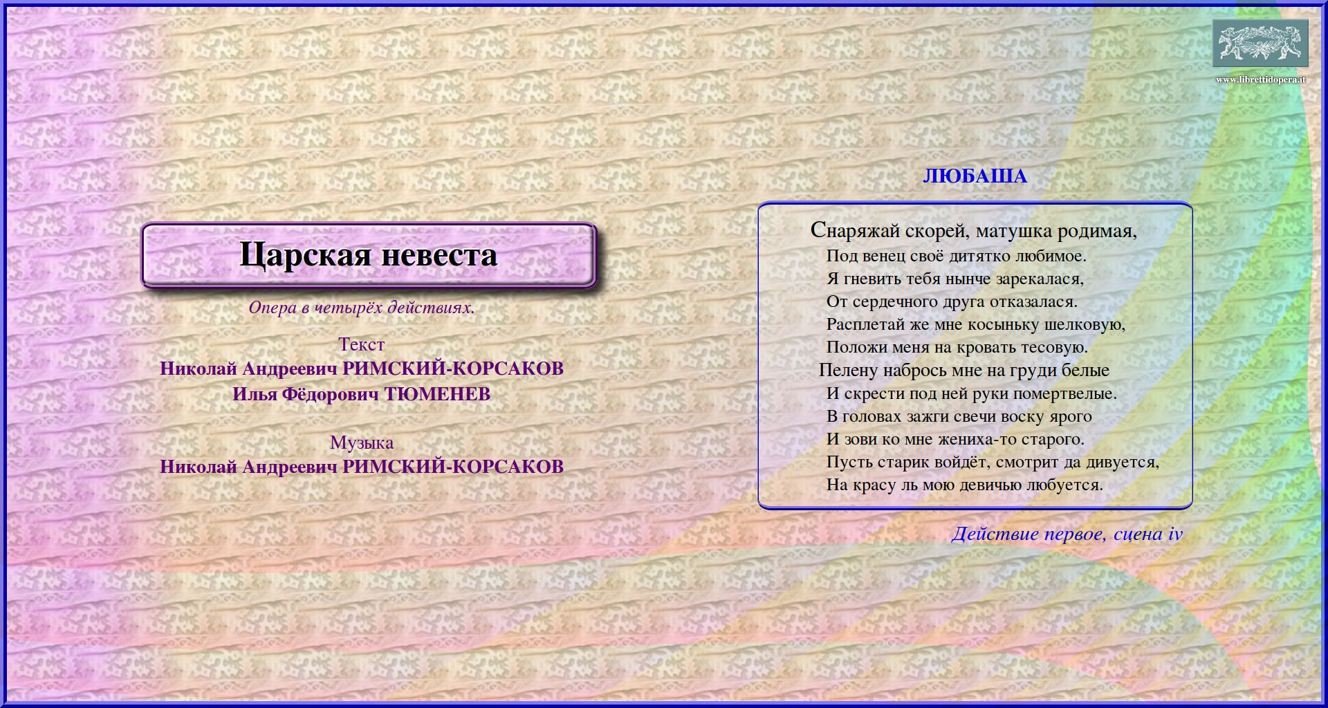 Снаряжай скорей, матушка родимая В Новгороде мы рядом с Ваней жили Туча ненастная мимо промчалася Иван Сергеич, хочешь в сад пойдём?