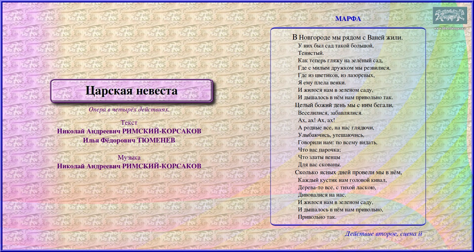 Снаряжай скорей, матушка родимая В Новгороде мы рядом с Ваней жили Туча ненастная мимо промчалася Иван Сергеич, хочешь в сад пойдём?