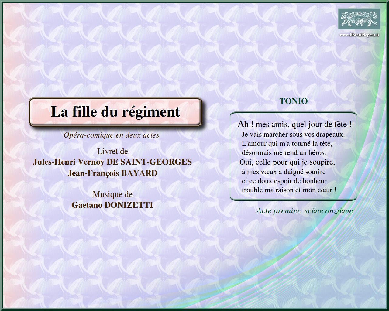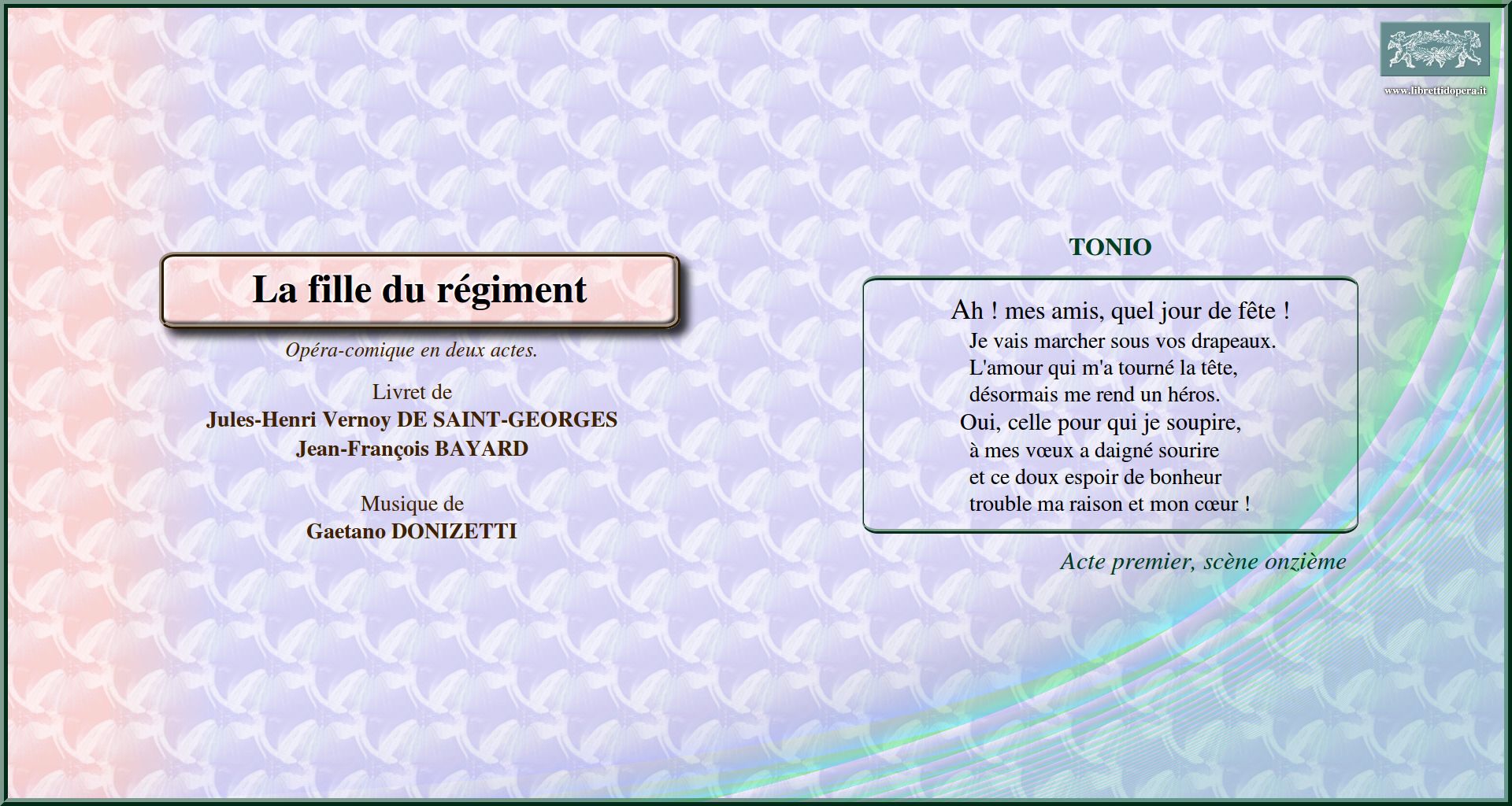 Pour une femme de mon nom Ah ! mes amis, quel jour de fête ! Salut à la France !