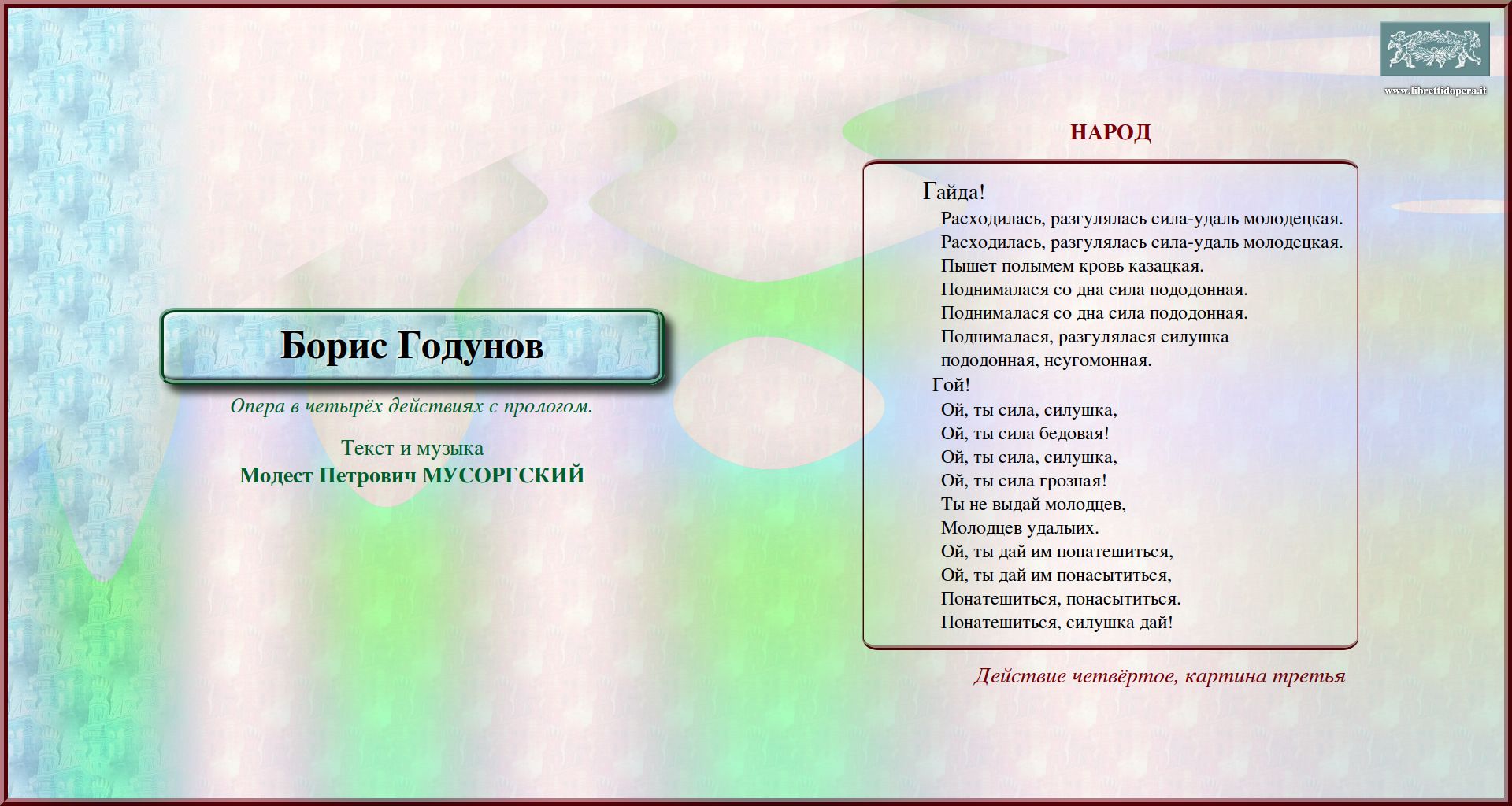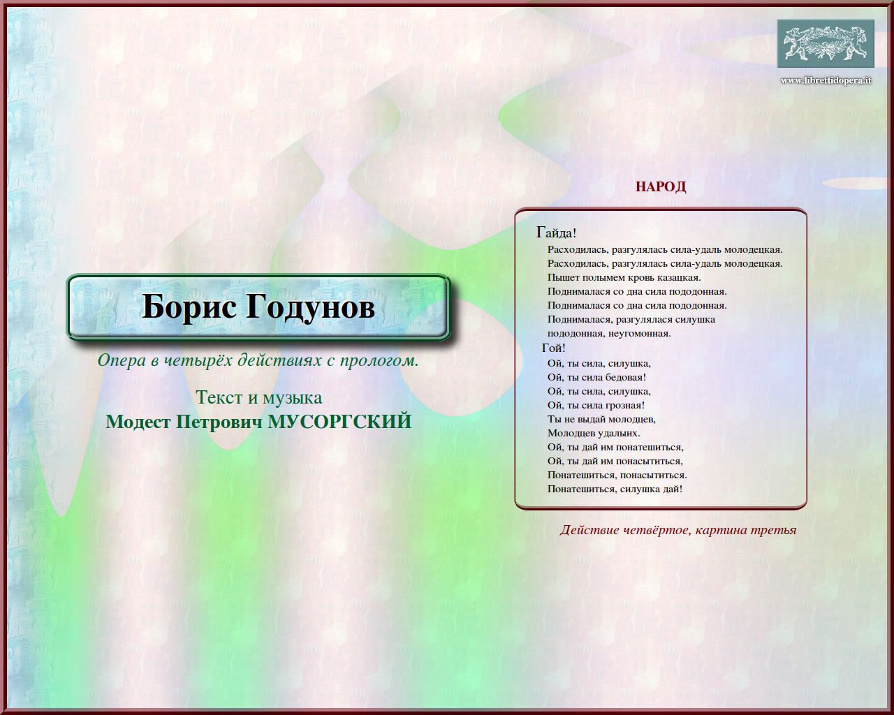 перейти к тексту либретто