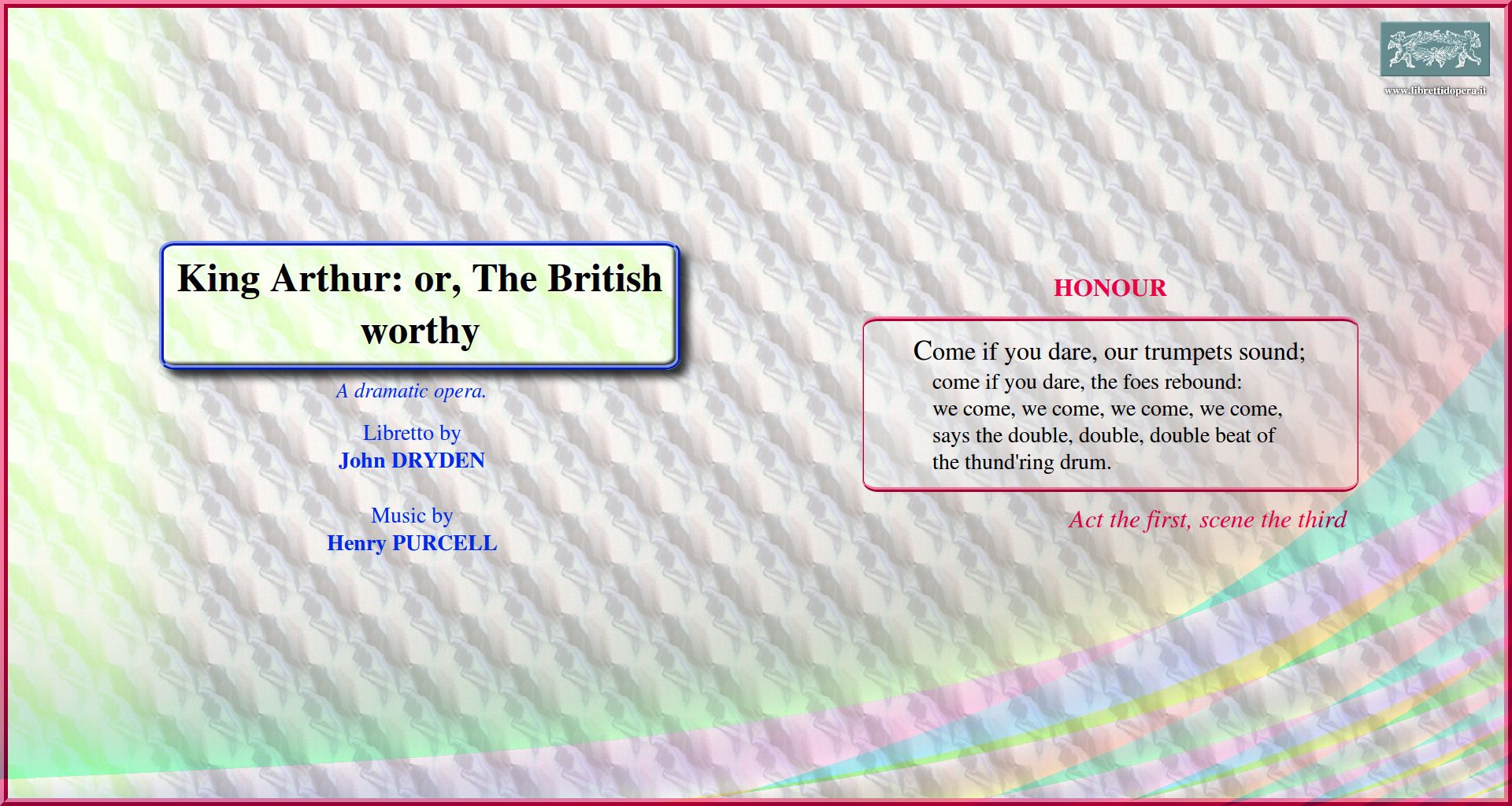 Come if you dare, our trumpets sound Hither this way, this way bend What power art thou, who from below For love every creature Cupid, from his fav'rite nation