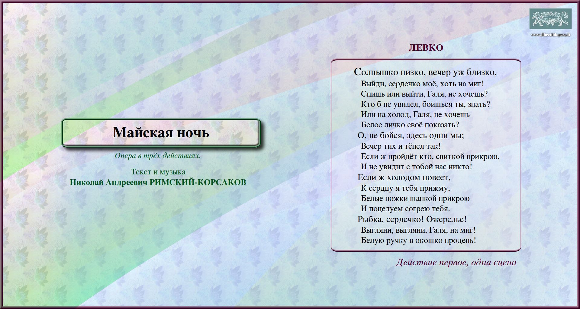 перейти к тексту либретто