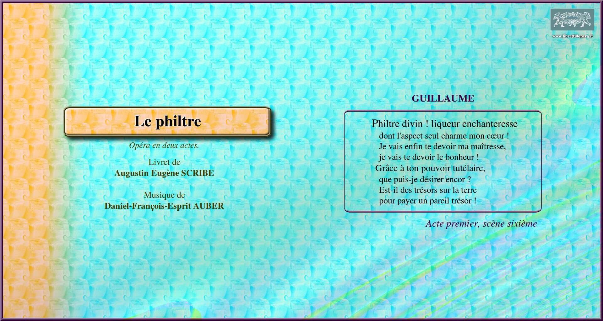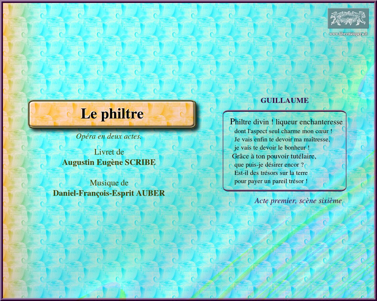 Philtre divin ! liqueur enchanteresse Ô miracle ! ô surprise extrême !