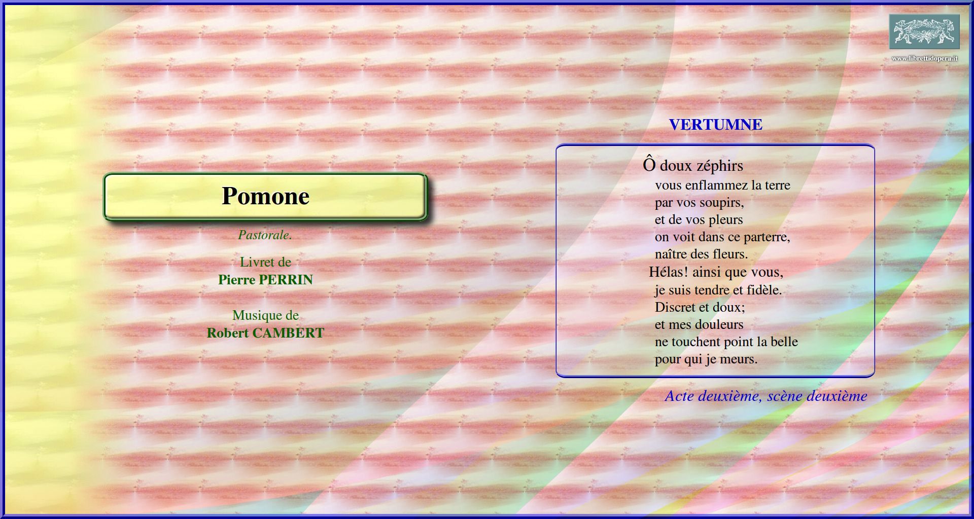 Le dieu des jardins O doux zéphirs Venez dieux et mortels, à cette grande fête