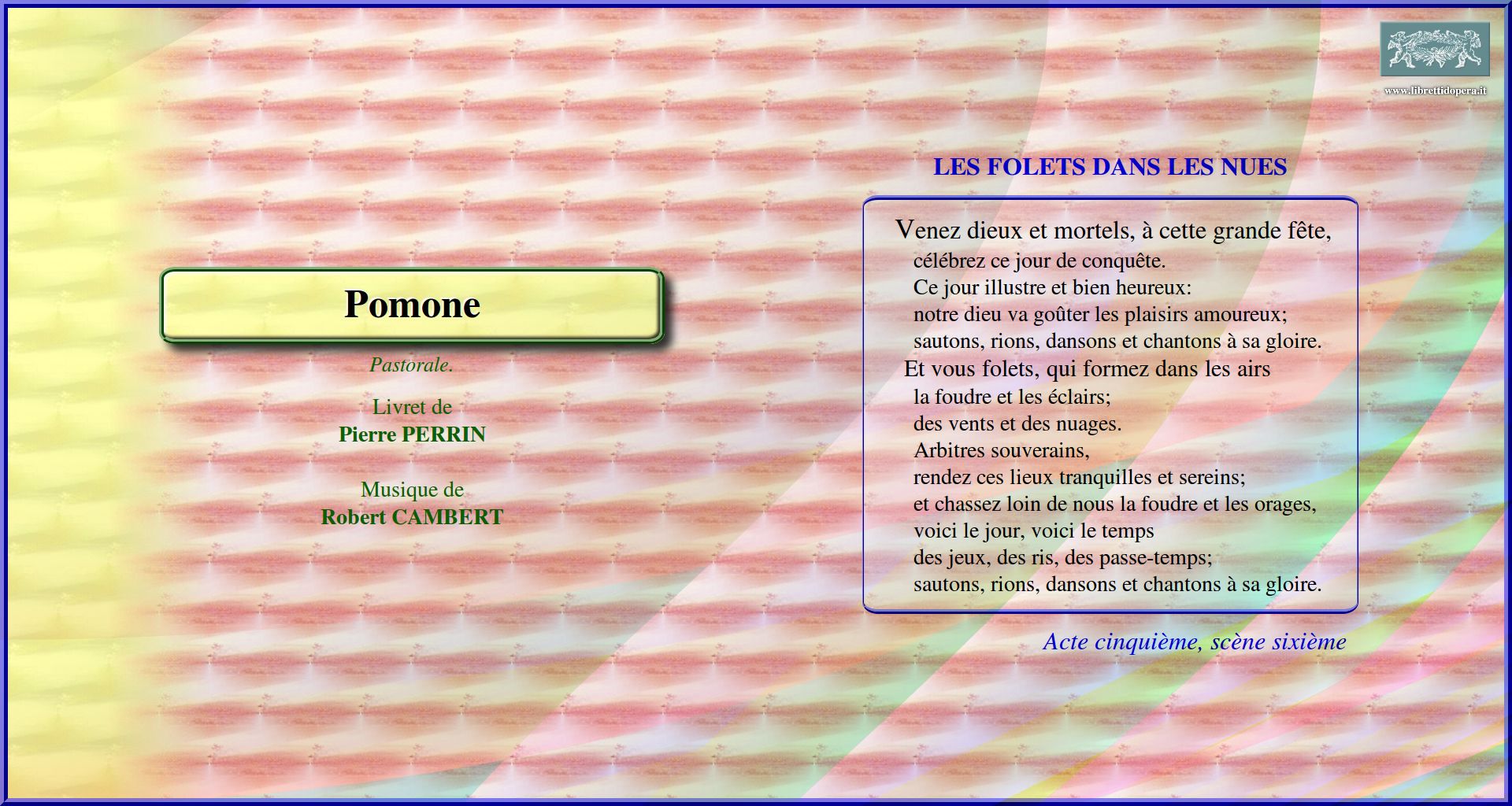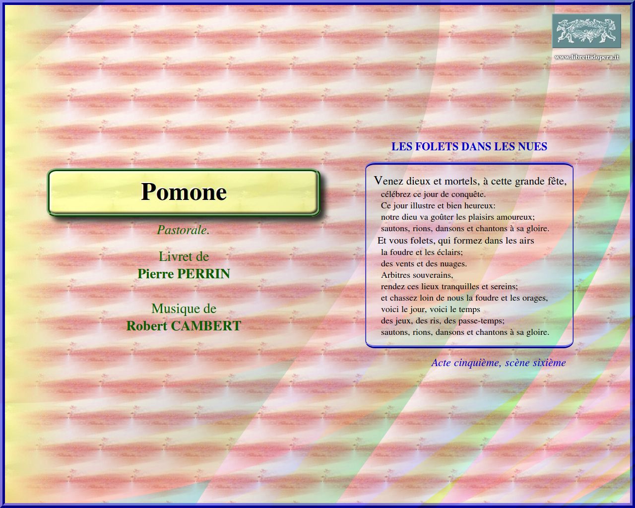 Le dieu des jardins O doux zéphirs Venez dieux et mortels, à cette grande fête