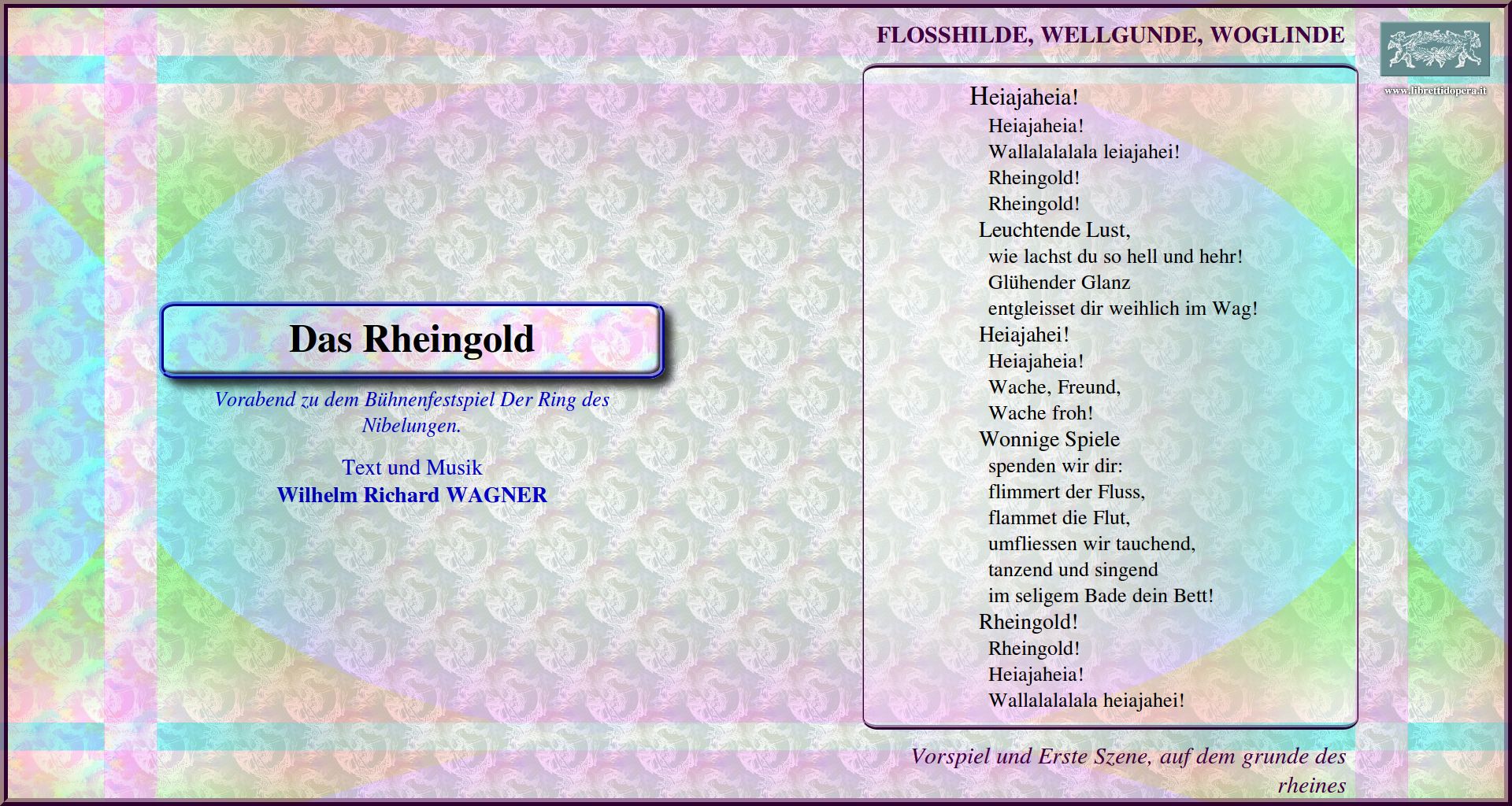 Heiajaheia! Heiajaheia! Sanft schloss Hieher! Dorthin! Rheingold! Rheingold!