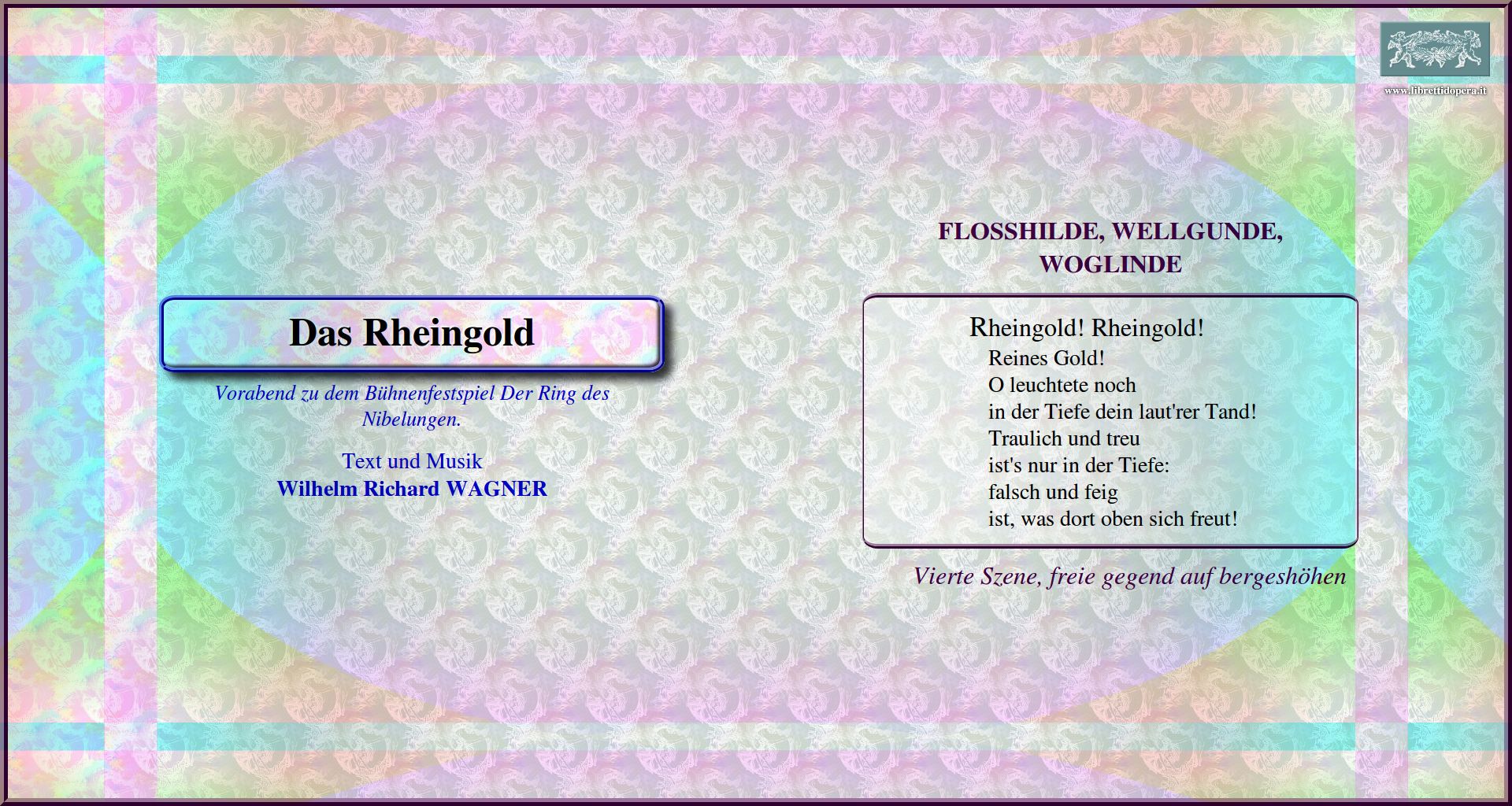 Heiajaheia! Heiajaheia! Sanft schloss Hieher! Dorthin! Rheingold! Rheingold!