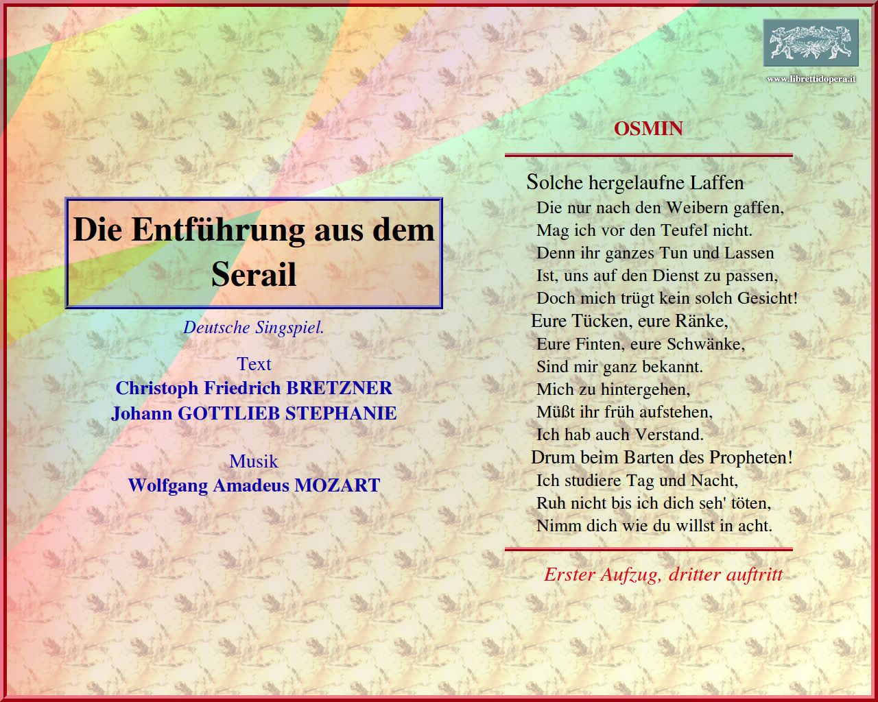Zu Lage im Text von dem Libretto geh