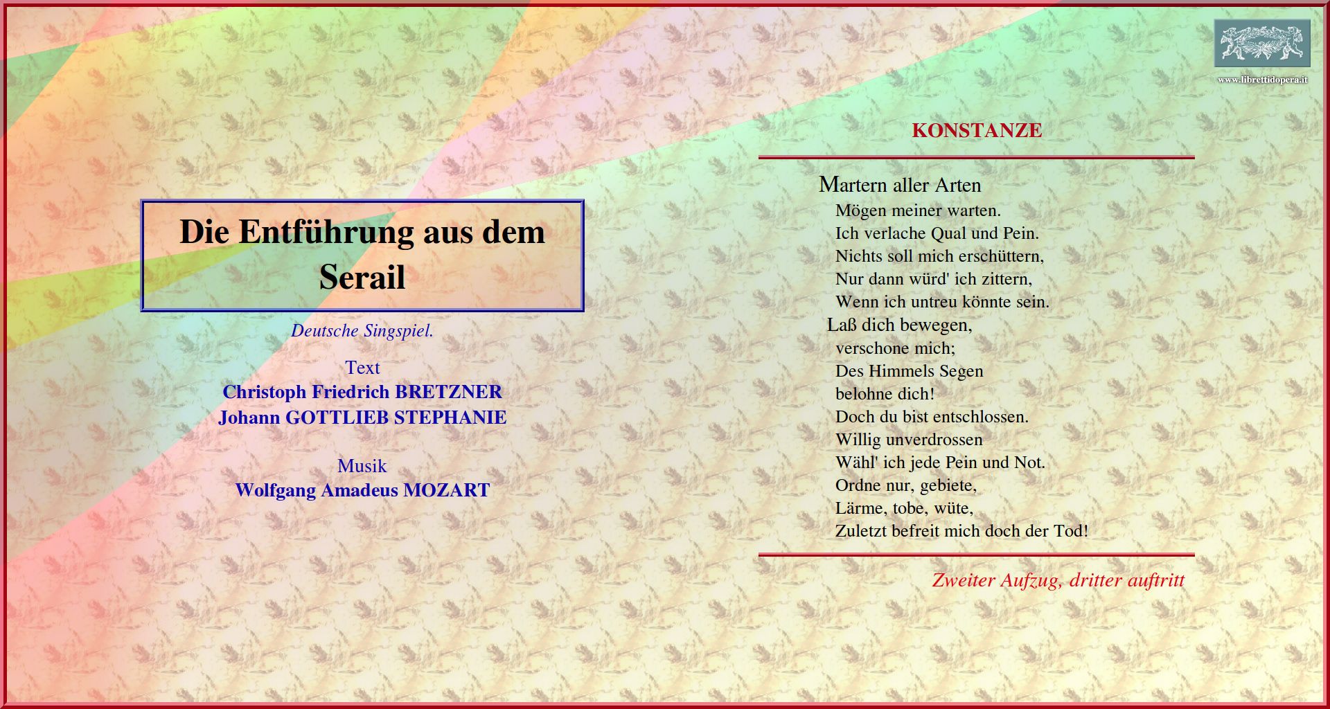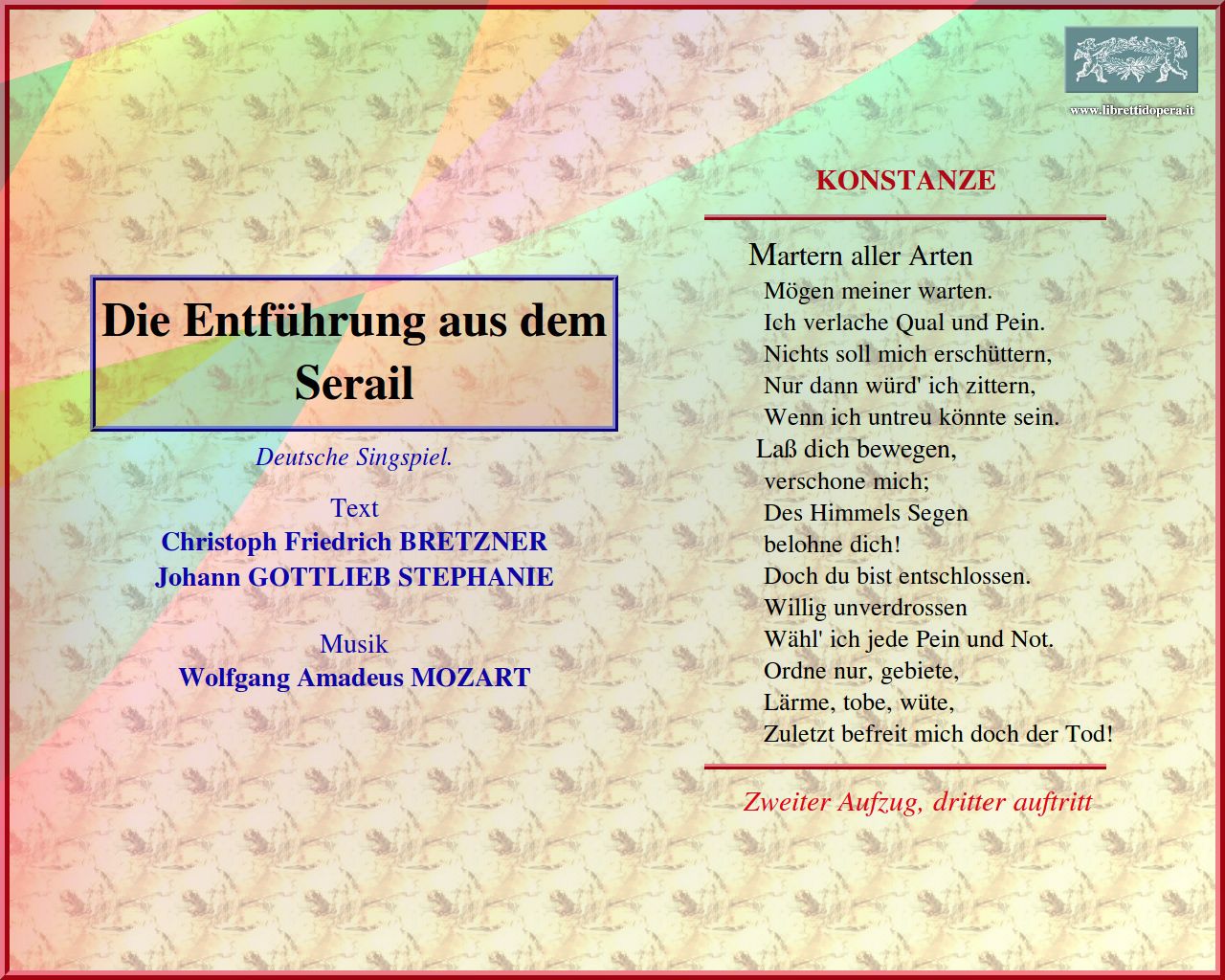 Zu Lage im Text von dem Libretto geh