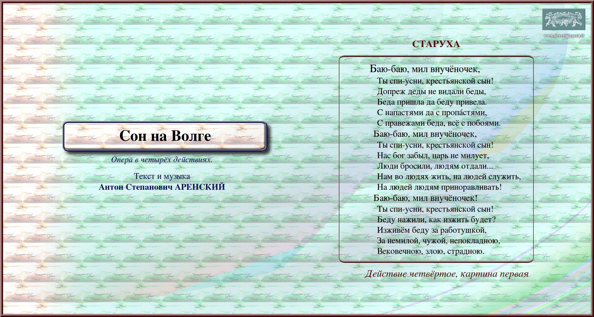 перейти к тексту либретто