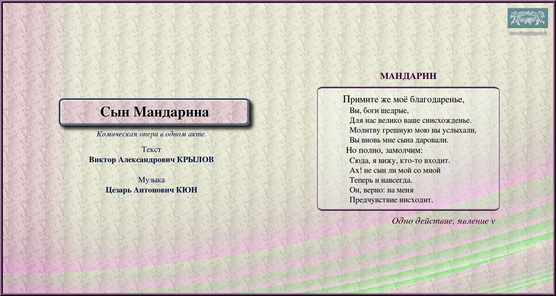 перейти к тексту либретто