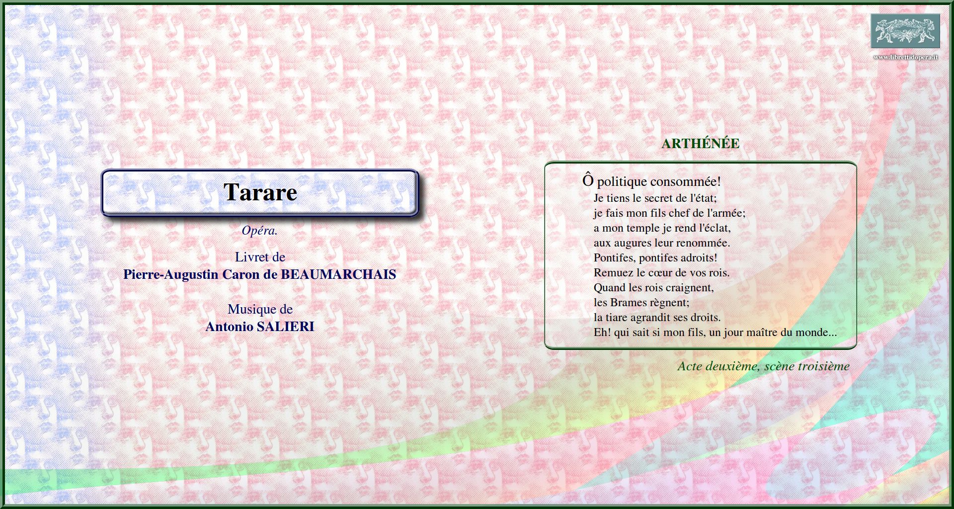 Ô bienfaisante déité! Je suis heureux, vous êtes ranimée Ô politique consommée! Aux travaux mêlons la gaîté Dis à ton maître De ce grand bruit, de cet éclat