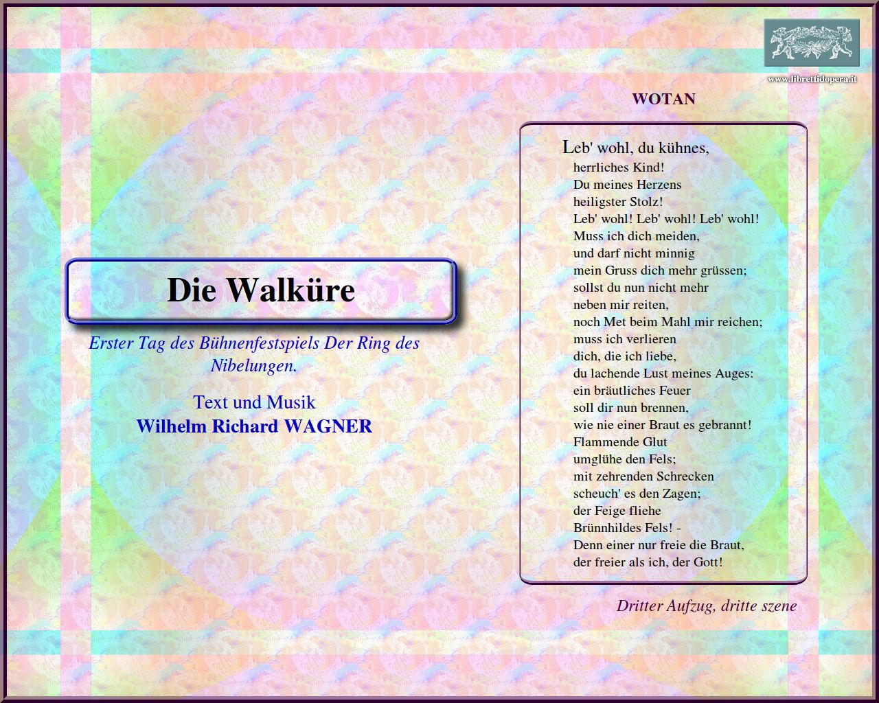 Winterstürme wichen Hojotoho! Hojotoho! Leb' wohl, du kühnes