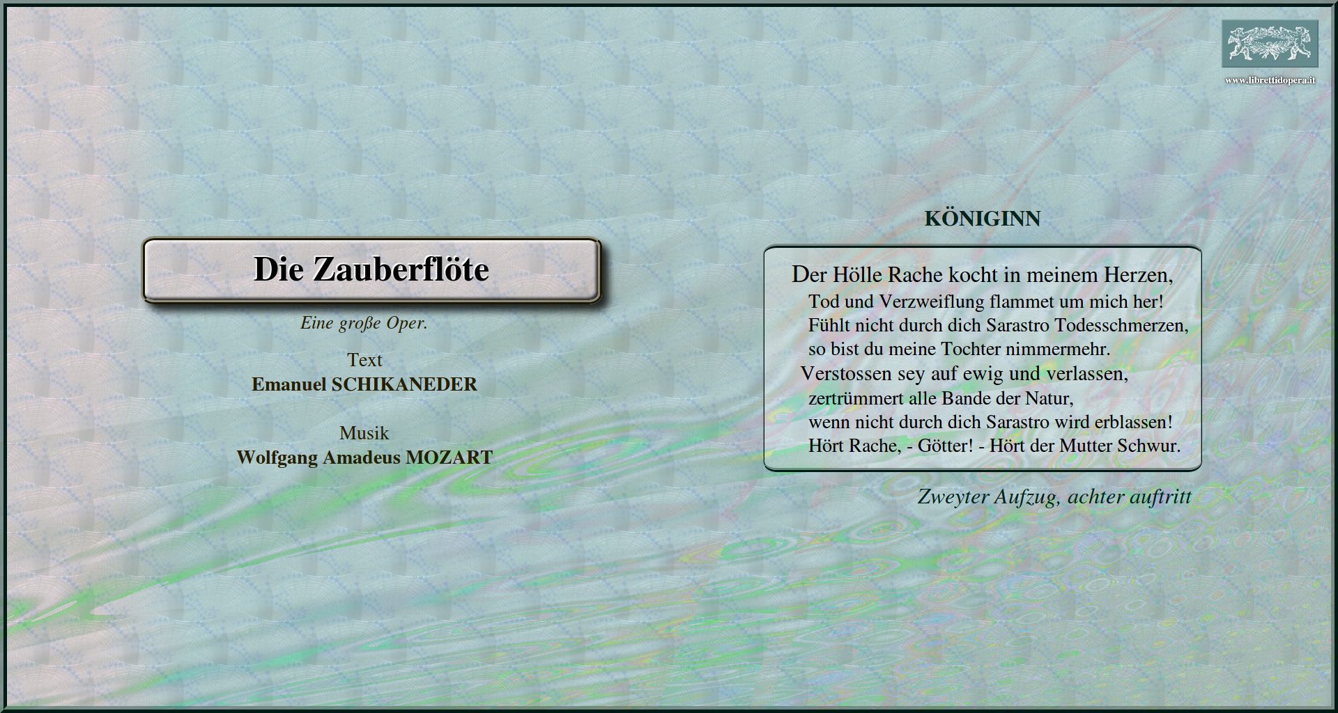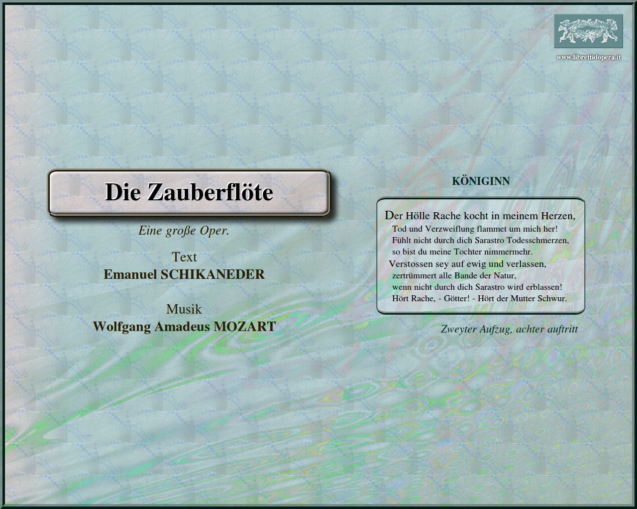 Der Vogelfänger bin ich ja Diess Bildniss ist bezaubernd schön Der Hölle Rache kocht in meinem Herzen Ach ich fühls, es ist verschwunden